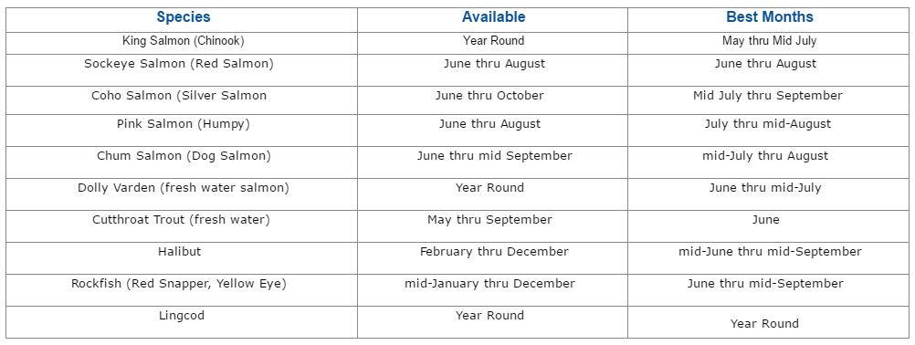 The following graphic illustrates when the fishing is available at it’s peak time.